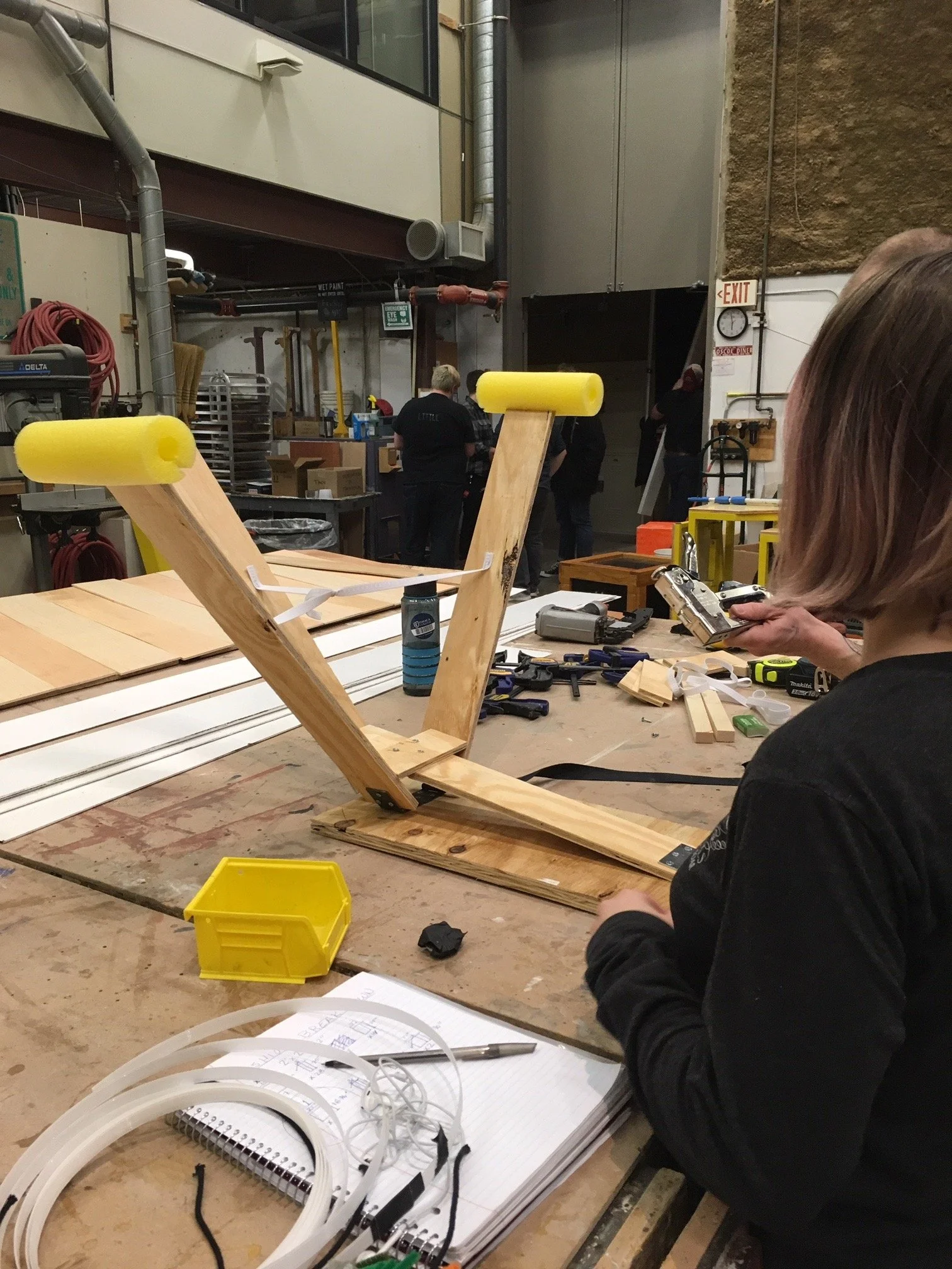 Ghost mechanism in progress - used to make the tablecloth billow during the séance